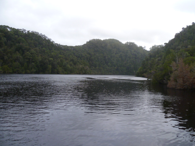 The boat speeds across the sheltered waters of Macquarie harbour to the evocatively titled